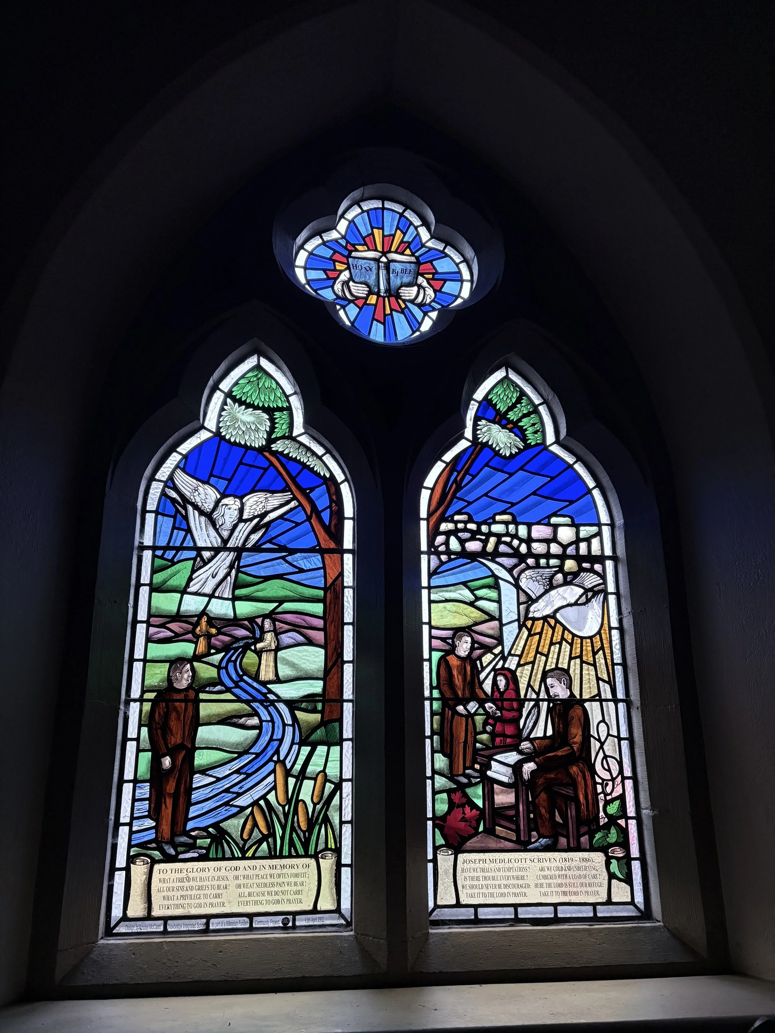 On 15th April 2002, a stained glass window in his memory was also dedicated in Holy Trinity Parish Church. The ceremony was conducted by the Right Reverend Henry Scriven, Suffragan Bishop of Gibraltar in Europe, who was in fact the great-great-grandnephew of Joseph Scriven.